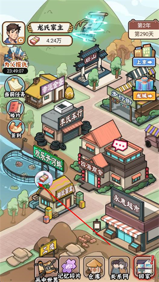 城鎮(zhèn)場(chǎng)景中的產(chǎn)業(yè)(商行、超市、盲盒店等)均可收購(gòu),收購(gòu)后會(huì)實(shí)時(shí)更新商業(yè)版圖,不同產(chǎn)業(yè)的收益類型需搭配布局,輔助菜單則讓擴(kuò)張節(jié)奏完全由玩家掌控。