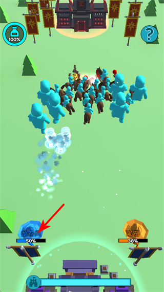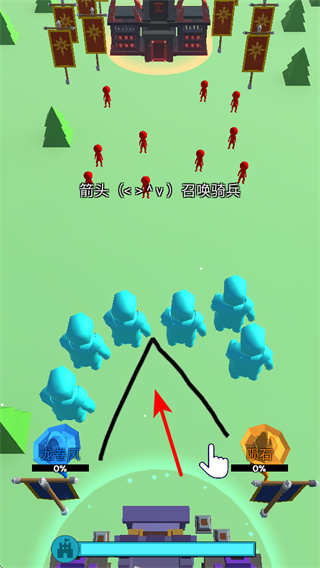1、按照指引繪制箭頭形狀,可召喚騎兵單位支援戰(zhàn)斗,騎兵能增強己方戰(zhàn)力,是壓制敵方紅色單位的有效助力。