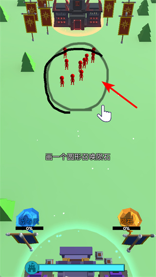 3、根據(jù)提示繪制圓形,可召喚隕石技能,隕石能對指定區(qū)域的敵方單位造成高額傷害,適合密集的敵方部隊。