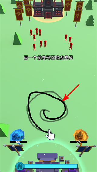 4、按照指引繪制龍卷形狀,可召喚龍卷風技能,龍卷風的范圍傷害能高效削弱敵方兵力,助力推進戰(zhàn)斗進程。