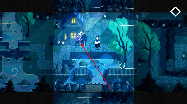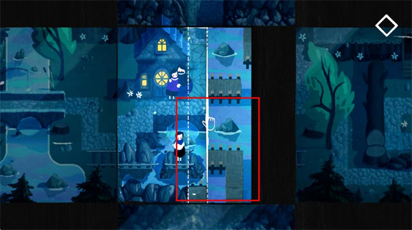 核心玩法基于剪紙分層場景設(shè)計,整個關(guān)卡由多個獨(dú)立的場景板塊疊加而成,玩家需拖動、調(diào)整板塊位置來連通路徑、破解機(jī)關(guān),打破了傳統(tǒng)解謎的固定場景限制。
