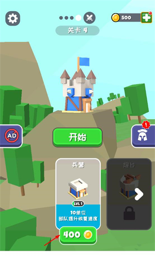 3、升級建筑,消耗金幣提升其等級,增強部隊恢復(fù)速度等屬性,提升整體戰(zhàn)力。