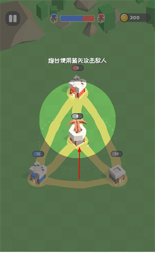 4、借助炮臺等防御建筑,利用箭矢攻擊敵方部隊,輔助己方兵力推進,提升攻防效率。