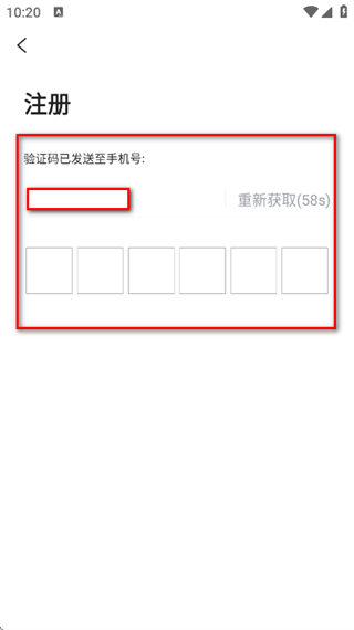 5、在注冊頁面,輸入收到的驗證碼,完成注冊登錄。