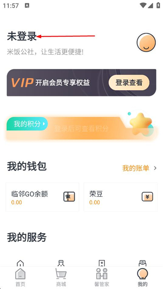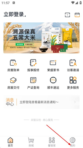 1、在米飯公社APP首頁(yè),點(diǎn)擊底部我的,進(jìn)入個(gè)人中心頁(yè)面。