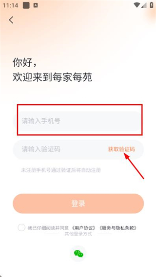 2、在登錄頁(yè)面填寫(xiě)手機(jī)號(hào),點(diǎn)擊獲取驗(yàn)證碼。