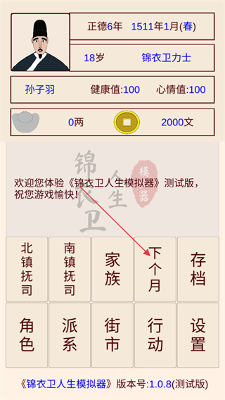 3、完成這個(gè)月的所有事項(xiàng)之后,可以點(diǎn)擊下個(gè)月進(jìn)入下月的人生劇情。
