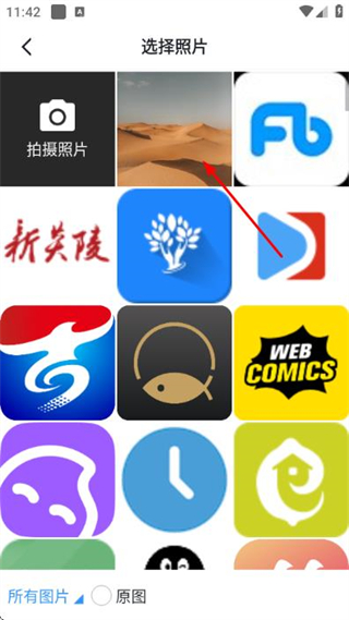 4、在選擇照片頁(yè)面選中目標(biāo)圖片,進(jìn)入圖片裁剪頁(yè)面。