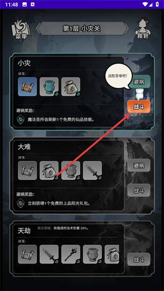4、用學(xué)習(xí)的修術(shù)和煉器裝備,擊敗敵人之后即可獲得關(guān)卡獎勵。