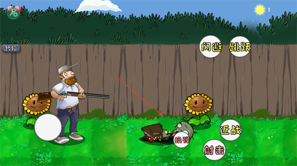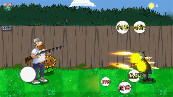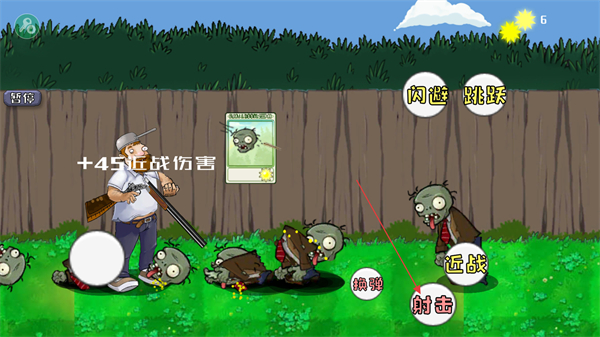 1、點(diǎn)擊射擊攻擊僵尸,同時(shí)可通過閃避,跳躍躲避攻擊,保護(hù)自身。