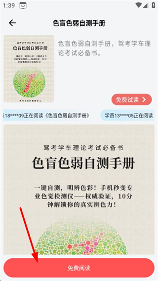 2、在電子書架中選擇色盲色弱自測手冊,進入該書詳情頁。