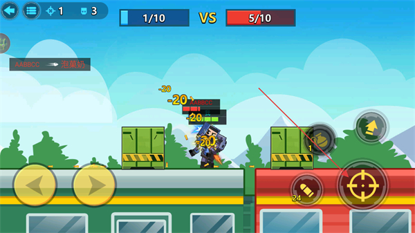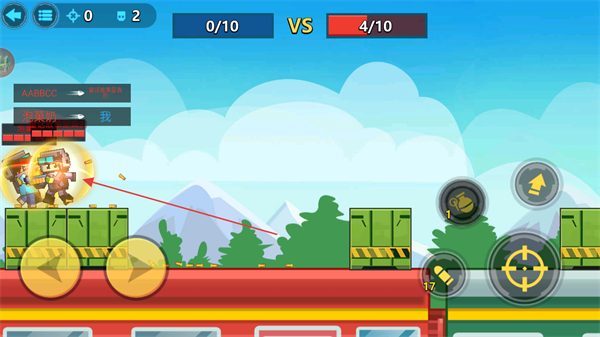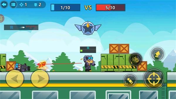 1、操控角色移動,點擊攻擊按鈕射擊敵方角色,積累擊殺數(shù)。