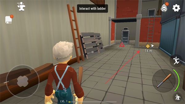 1、根據(jù)提示向梯子移動(dòng),靠近目標(biāo)交互點(diǎn)。