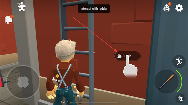 2、點(diǎn)擊Climb按鈕,與梯子交互開始攀爬。