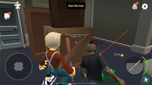 4、靠近僵尸,使用工具攻擊僵尸,同時(shí)向列車啟動(dòng)點(diǎn)前進(jìn)。