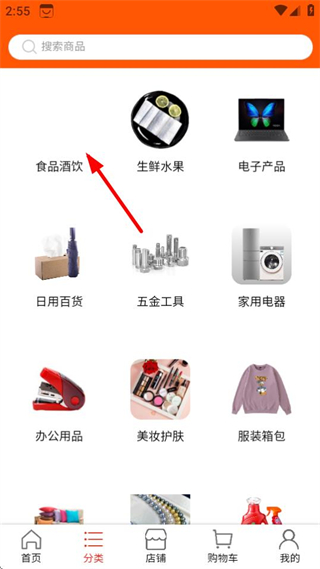 2、在分類頁面,點(diǎn)擊食品酒飲分類,進(jìn)入該分類的商品列表頁面。