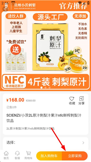 4、在商品詳情頁面,點(diǎn)擊立即采購按鈕,即可完成該商品的采購流程。
