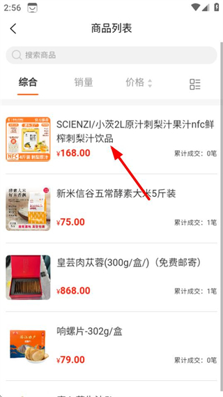 3、在食品酒飲商品列表中,選擇目標(biāo)商品,進(jìn)入該商品的詳情頁面。
