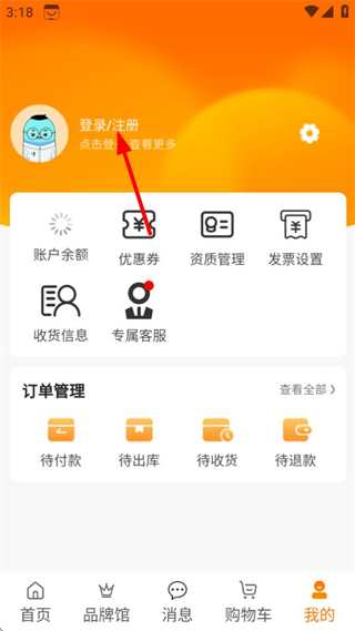 2、在個人中心頁面,點擊登錄注冊選項,進(jìn)入登錄頁面。