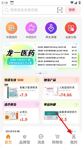 1、在藥品終端網(wǎng)首頁,點擊底部導(dǎo)航欄的我的選項,進(jìn)入個人中心頁面。