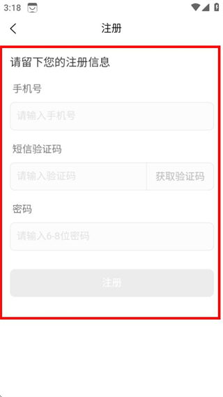 4、在注冊頁面,填寫信息后,點擊注冊按鈕完成賬號注冊。