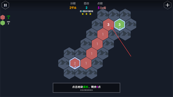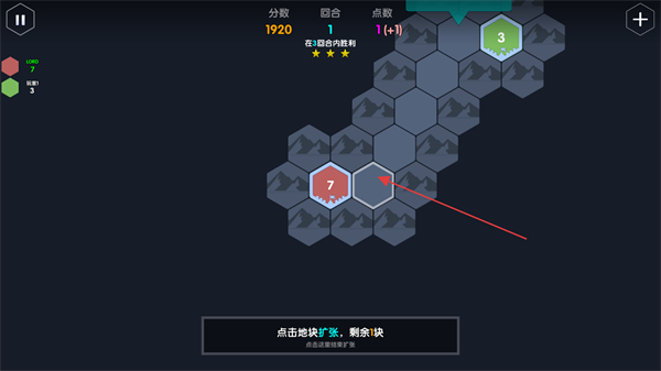 3、點擊地塊進行數值的增長,直到大于敵方玩家的數值后,點擊擴張吞并領地。