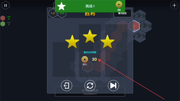 4、首次通過關卡可以 獲得硬幣獎勵,點擊右邊的箭號按鈕進入下一關。