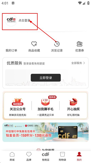 1、在中免海南商城首頁,點擊底部我的,進入個人中心頁面。