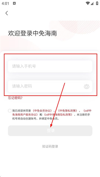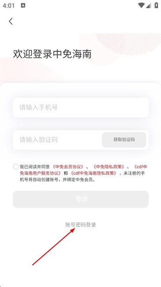 5、在密碼登錄界面,輸入手機號和密碼,點擊登錄,完成賬號登錄。