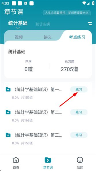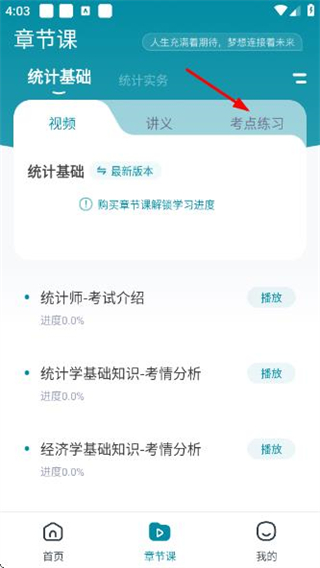 1、在統(tǒng)計師優(yōu)題首頁點擊底部的章節(jié)課,進入章節(jié)課頁面。