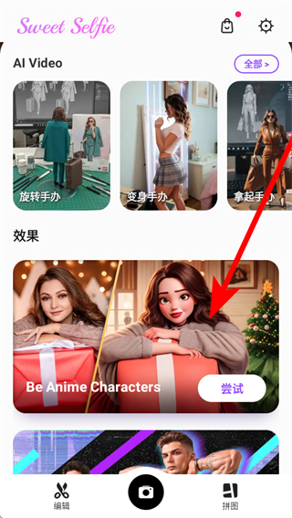 1、在APP首頁效果板塊找到Be Anime Characters,點嘗試即可進入動漫風格選擇界面。