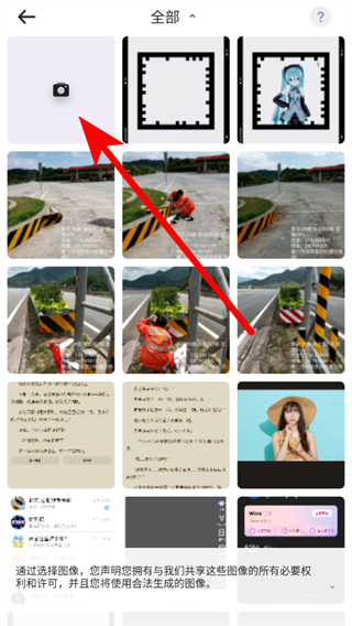 3、在圖片選擇界面中點擊相機圖標,進入拍攝頁面。