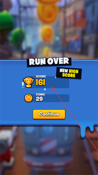 2、通過滑動屏幕的方式控制角色躲避建筑,獲取道路上的金幣。