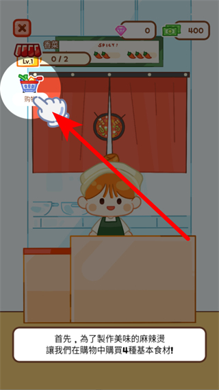 3、根據(jù)游戲提示,點擊購物按鈕,進入食材采購界面準(zhǔn)備購買所需食材。