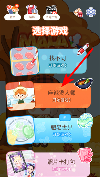 1、在選擇游戲界面,點擊麻辣燙大師對應(yīng)的開始游戲按鈕,進入該游戲。