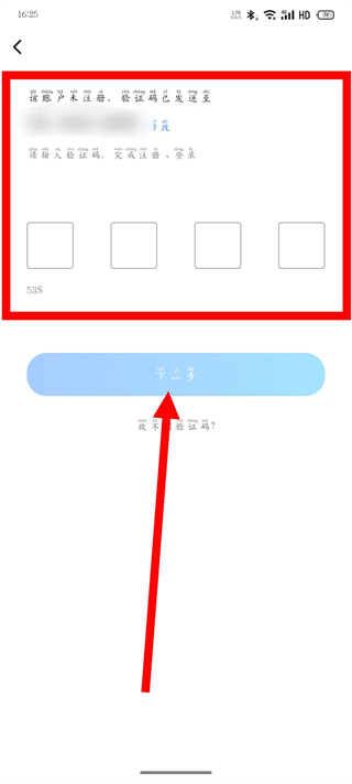 4、在短信驗(yàn)證頁(yè)面,填寫(xiě)收到的驗(yàn)證碼,點(diǎn)擊下一步。