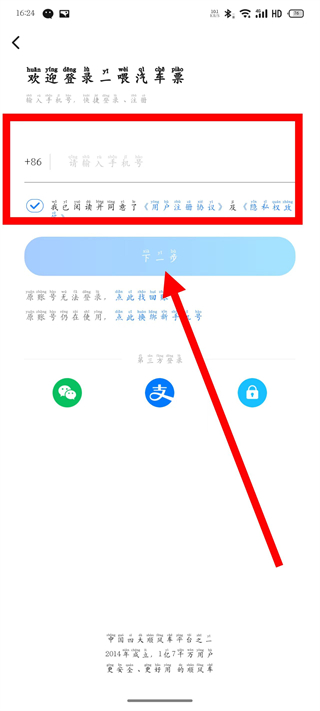 3、在注冊(cè)頁(yè)面,輸入手機(jī)號(hào),勾選后,點(diǎn)擊下一步。