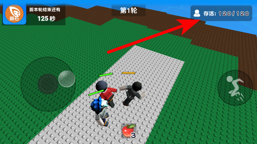 2、在游戲頁面,查看存活人數(shù)顯示,了解當(dāng)前參與人數(shù)。