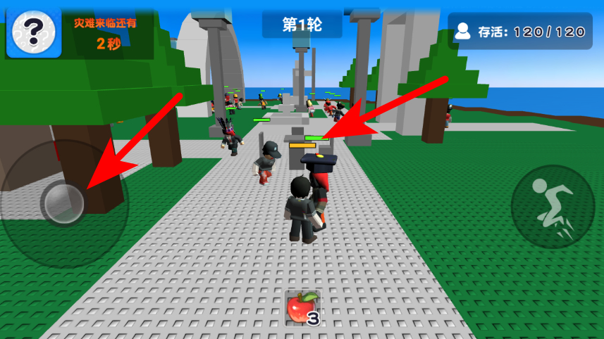 3、在游戲場景中,通過左側(cè)按鈕移動角色,前往目標(biāo)區(qū)域。