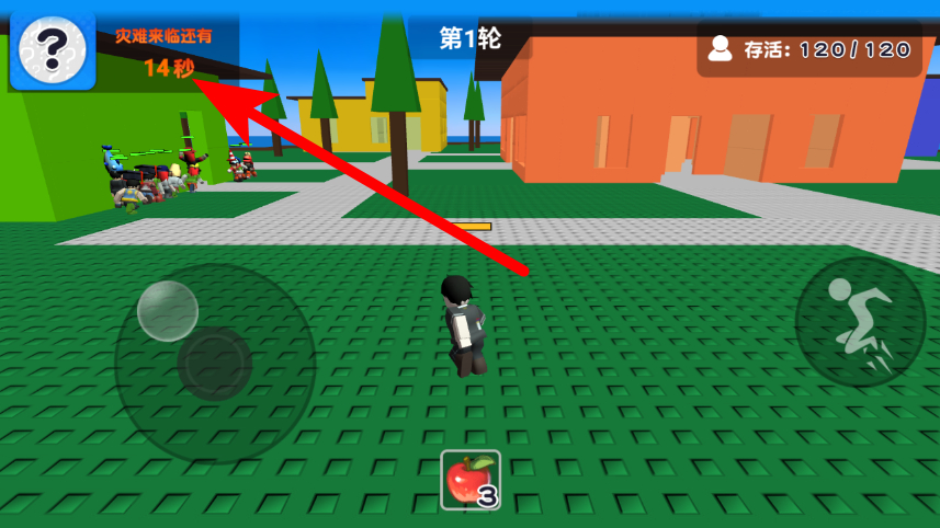 2、開局留意頂部倒計(jì)時(shí),災(zāi)難來(lái)臨前需快速移動(dòng)至安全區(qū)域。