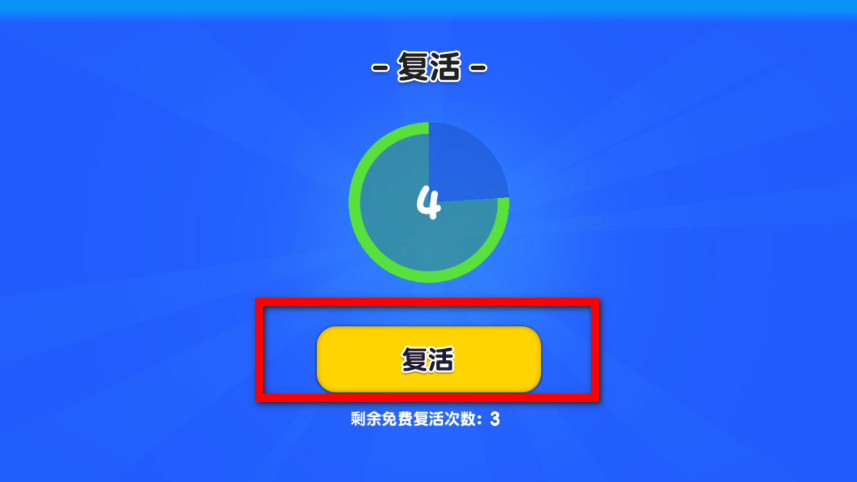 4、若角色淘汰,可點(diǎn)擊復(fù)活按鈕,使用剩余次數(shù)重返游戲繼續(xù)挑戰(zhàn)。