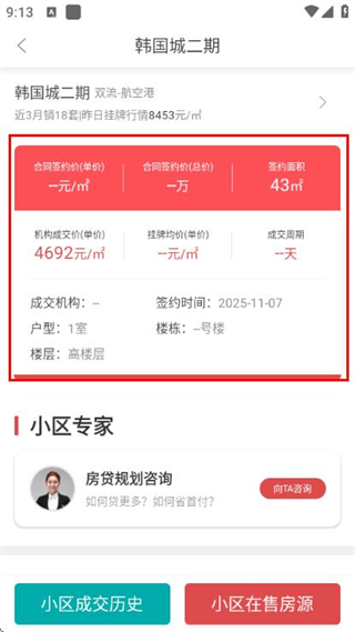 3、在詳情頁面,查看合同簽約價、成交機構等成交相關信息。