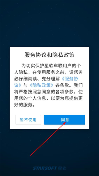 1、在服務(wù)協(xié)議和隱私政策彈窗中,點擊同意,進入登錄界面。