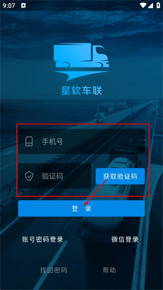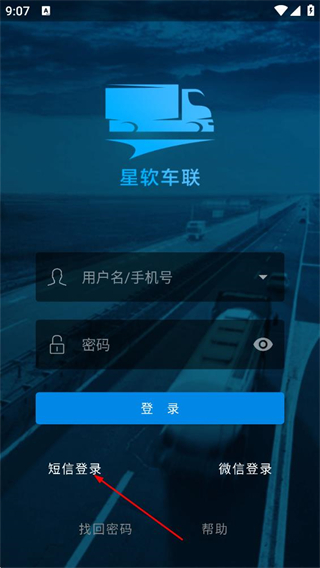2、在星軟車聯(lián)登錄界面,點擊短信登錄,切換至短信登錄頁面。