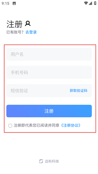 4、在注冊(cè)頁(yè)面,填寫信息并勾選協(xié)議后,點(diǎn)擊注冊(cè)完成賬號(hào)注冊(cè)。