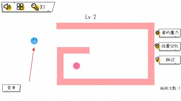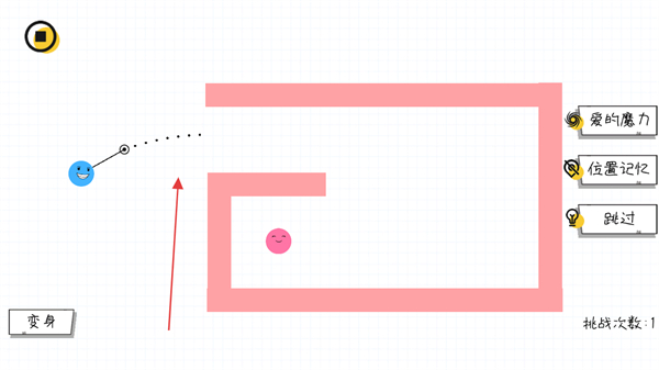 3、通過多次彈射調(diào)整路徑,讓藍(lán)色小球與粉色小球相遇,完成關(guān)卡目標(biāo)。