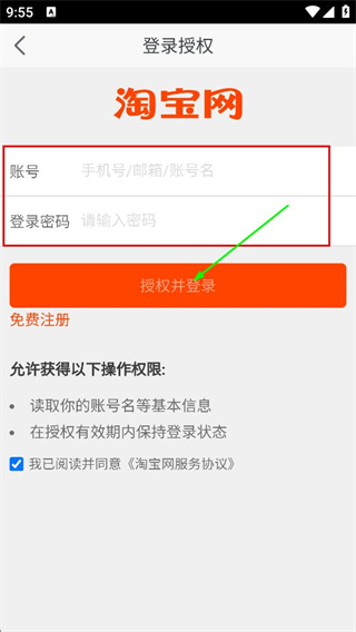 5、在授權頁面,輸入賬號和登錄密碼,點擊授權并登錄,完成賬號登錄。