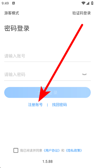 2、在登錄頁面,點擊注冊賬號,進(jìn)入注冊頁面。