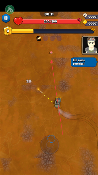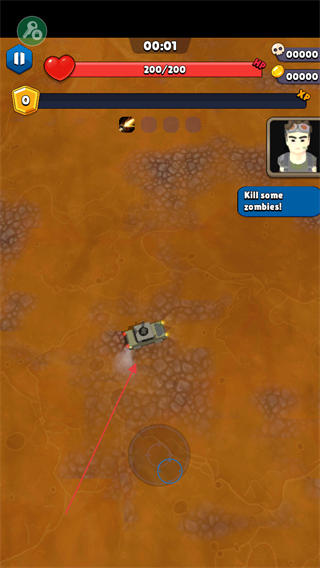 1、操控戰(zhàn)車移動,按照提示Killsomezombies!攻擊僵尸,積累分?jǐn)?shù)與資源,注意生命值狀態(tài)。