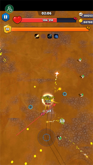 4、觸發(fā)LEVELUP后,繼續(xù)借助強化效果清剿僵尸,推進游戲進度。